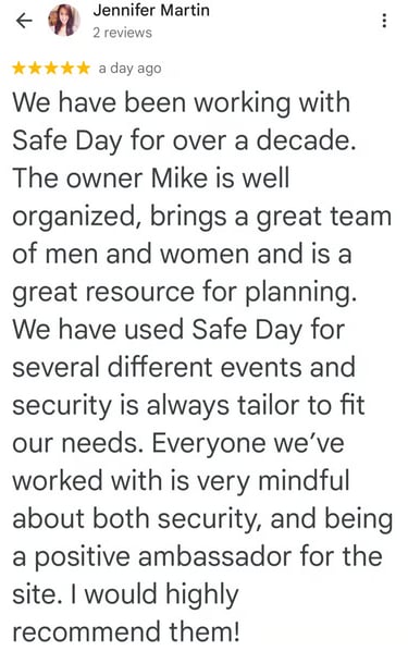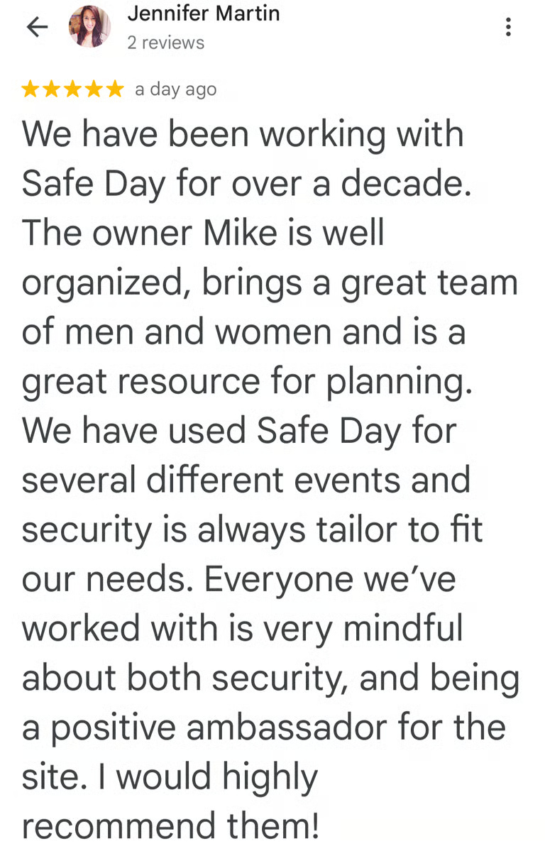 “ Expertly trained security teams for small intimate gatherings to large festivals, galas, and corporate functions..”